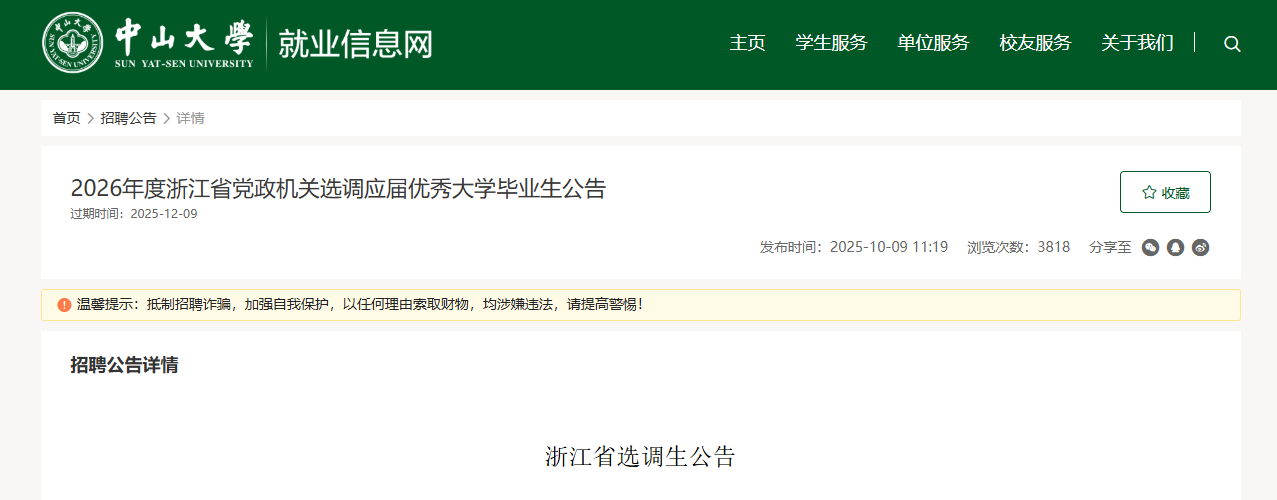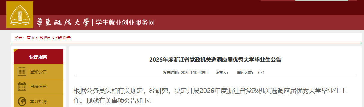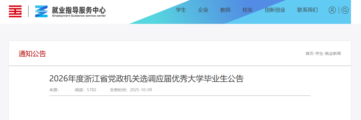 昨天恒富配资,部分知名高校在就业指导网站发布《2026年度浙江省党政机关选调应届优秀大学毕业生公告》(以下简称《公告》)。
