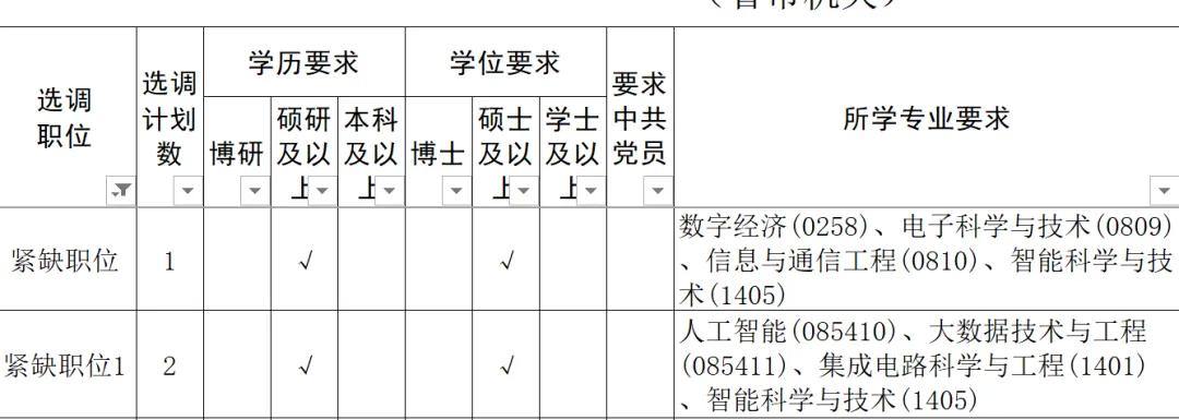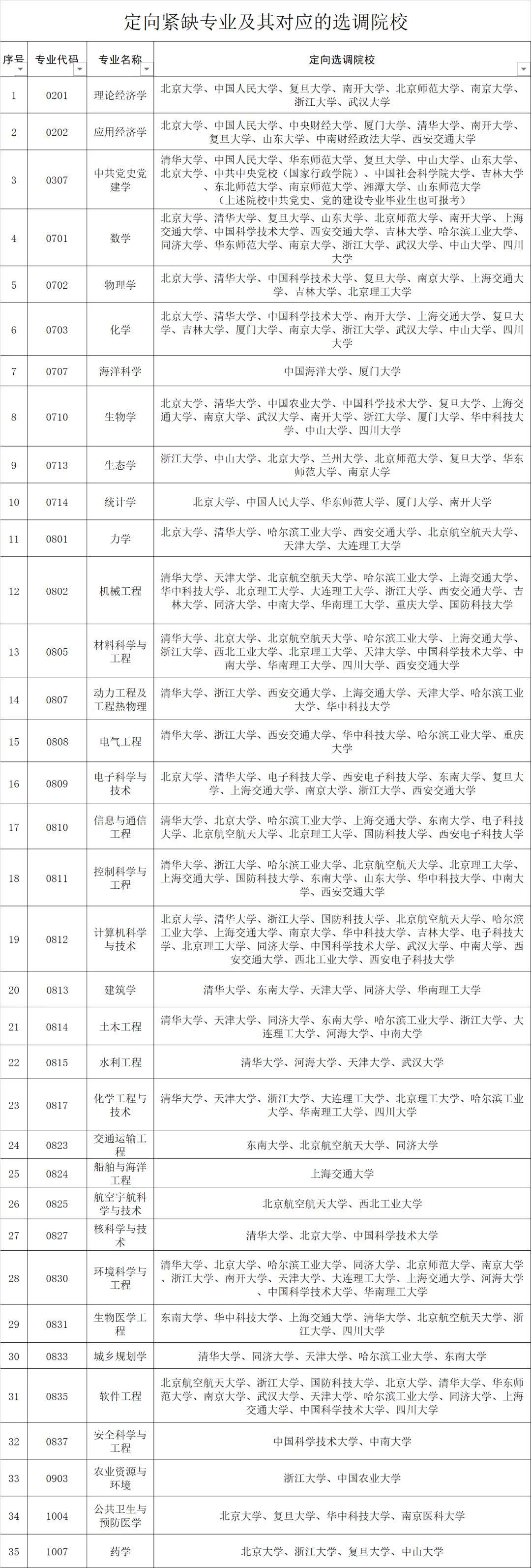 定向紧缺专业选调:定向部分院校35类紧缺专业选调,计划共275名。