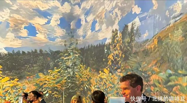 从李湘这次分享的这张《蝾螈》的作品来看,不少网友表示分不清是照片还是画的?人物面部细节和桌子水晶杯画的太像了 也有眼尖的网友认为后面的树和蓝天白云是画的,前面的桌子人物是实景