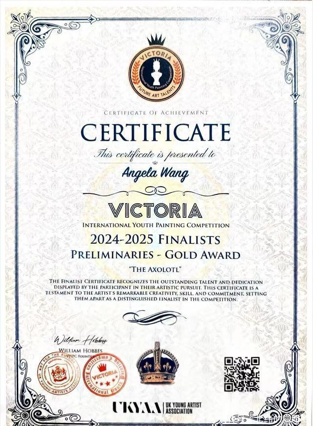 01 10月9日,李湘在社交平台恭喜她15岁的女儿王诗龄在一次维多利亚国际青少年绘画比赛的预赛里,凭借作品《蝾螈》获得了金奖,并成为了决赛入围者 为此,李湘高兴的配6张图片,以下第一张图是王诗龄的获奖证书