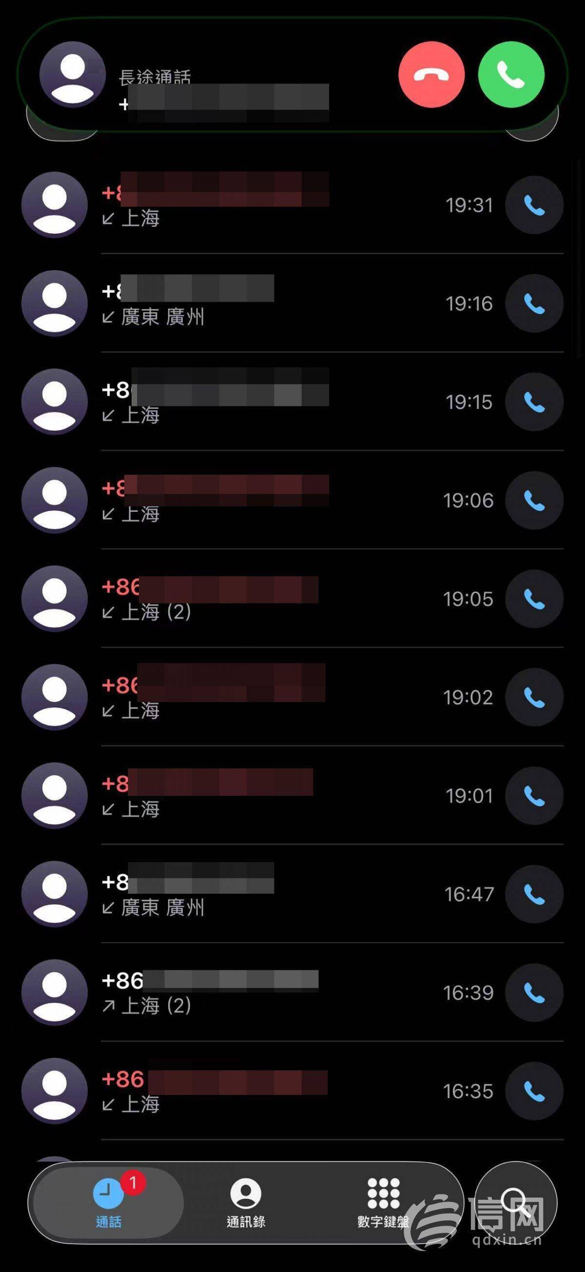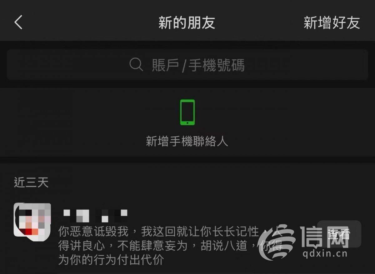 11月19日评论发布后,甘先生的手机就开始被陌生来电密集轰炸,“平均每小时10通电话,一直持续到20日凌晨1点,手机根本无法正常使用”。其中几通电话接通后,话筒里传来一名陌生男子的声音“差评赶紧删了,不然有你好受的”,或者类似的话语。 不仅有电话骚扰,还有陌生微信号申请添加甘先生为好友,验证消息也带有威胁意味:“你恶意诋毁我,我这回就让你长长记性,人得讲良心,不能肆意妄为,胡说八道,你得为你的行为付出代价。”在甘先生提供的来电页截图上,信号新闻看到,确实有多个号码归属地为上海的电话高频呼入记录。