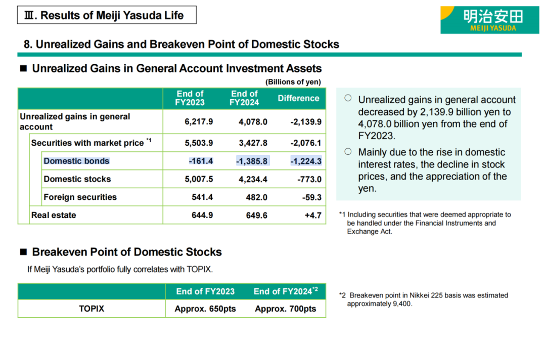 无独有偶,日本最大的寿险公司日本生命保险公司也于上周五发布消息称,该公司2024财年持有的日债出现3.6万亿日元的账面浮亏。